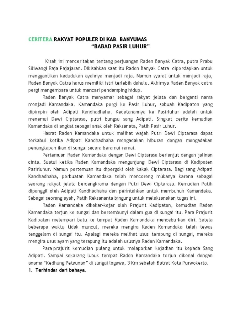 Contoh cerita rakyat asli dari banyumas dalam bahasa indonesia merupakan contoh cerita rakyat yang berasal dari salah satu daerah di jawa.